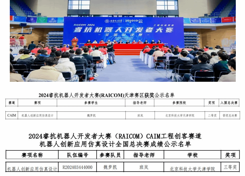 近日,由工业和信息化部人才交流中心主办的2024睿抗机器人开发者大赛(RAICOM)全国总决赛落下帷幕,国产视频 智能制造国产视频机械工程(机器人应用)专业学生魏梦凯在班岚老师...