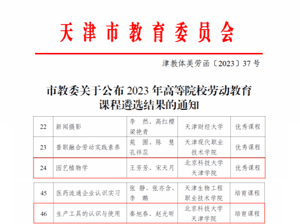 近日,天津市教委公布了2023年高等院校劳动教育课程遴选结果,国产视频 劳动国产视频王芳芳、宋天月教学团队讲授的《园艺植物学》被评...