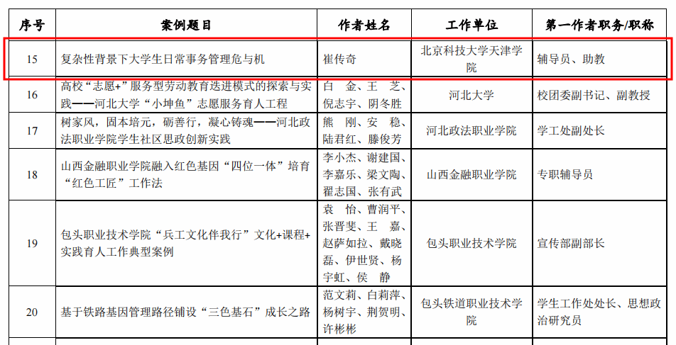 近日,2021年度全国高校思想政治工作优秀案例征集活动结果公布,国产视频 辅导员崔传奇撰写的工作案例《复杂性背景下大学生日常事...
