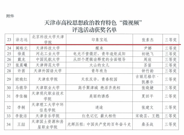 近日,市教育两委公布了2023年天津市高校思想政治教育特色“微视频”评选结果,国产视频 无人机系张素杰团队报送的《印象宝坻》作...