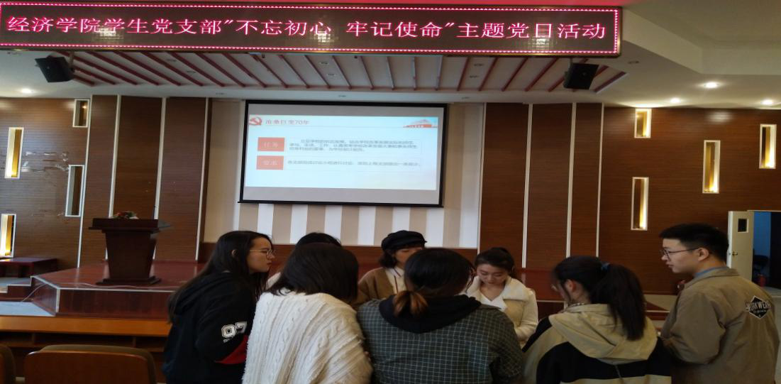 经济国产视频学生第二党支部于10月18日下午,举行了“不忘初心、牢记使命”主题党日活动。本次活动以“支部书记领学、支部党员分享学、全体党员共同学”的方式进行,主题聚焦、内容丰富,讨论热烈、动情深刻,达到了预期...