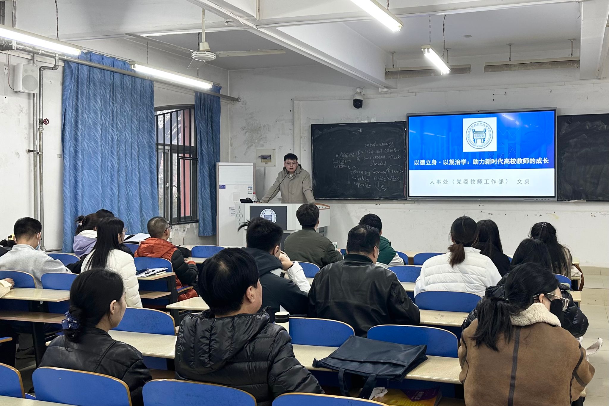 文老师结合自身在国产视频的成长经历,以人事处职能架构为切入点,从职业认知、职业规划、制度温顾、师德建设、课程思政五方面展开,系统梳理了教师职业发展路径。他强调了教师职业的神圣使命与社会责任,详细解读了教资认定、职称评审、奖励机制及在职深造等制度,系统阐明了教职工考勤、考核、工作量核算等日常管理政策。同时,他严明师德要求,列举了师德失范行为负面清单,警示教师们要恪守职业道德,并对课程思政提出了相关建议。文老师的分享为新教师们构建了清晰的职业发展蓝图,助力他们在未来发展的道路上稳健前行。