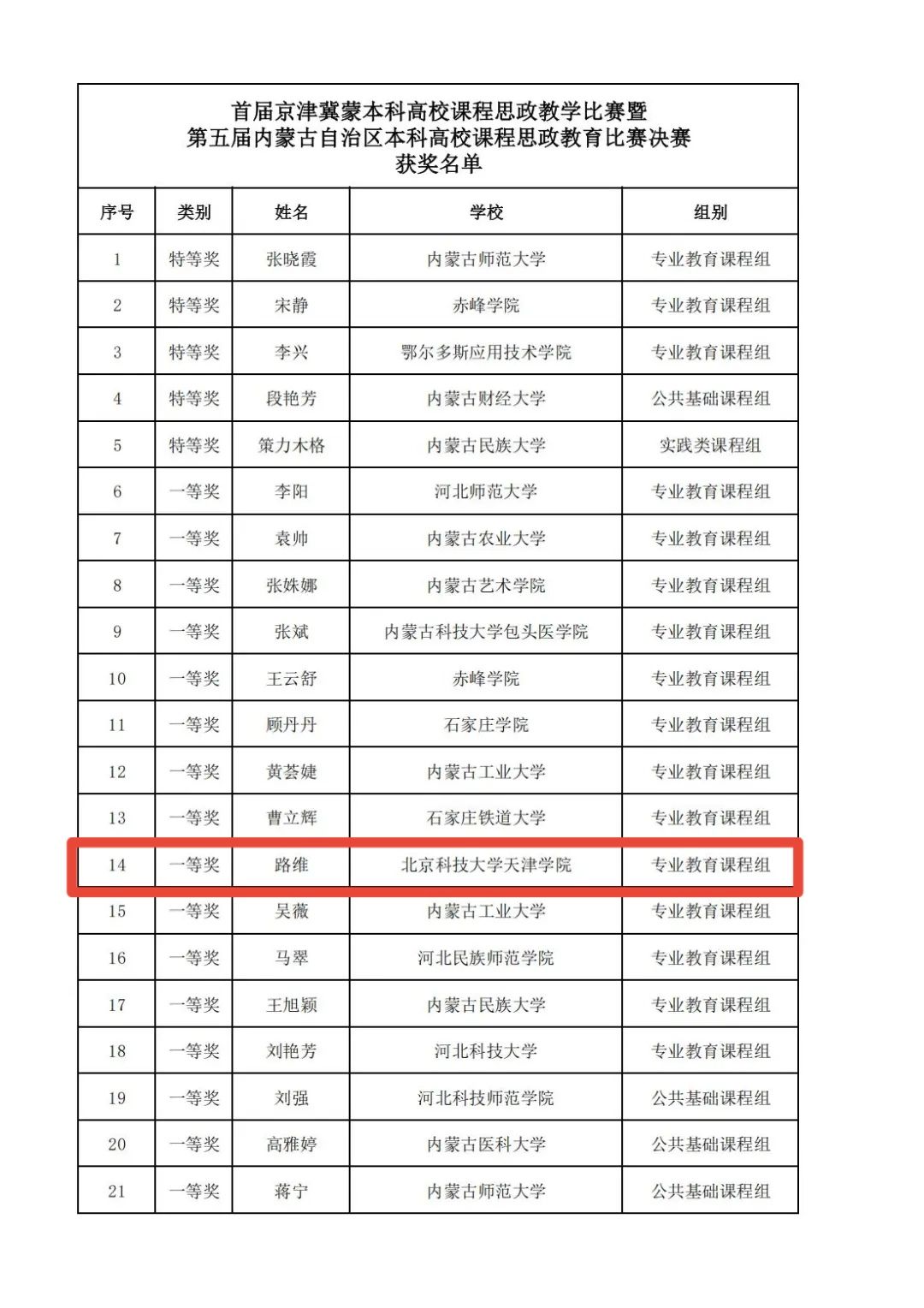 路维老师凭借扎实的教学功底与出色的思政教学设计,从众多参赛选手中脱颖而出,荣获一等奖。