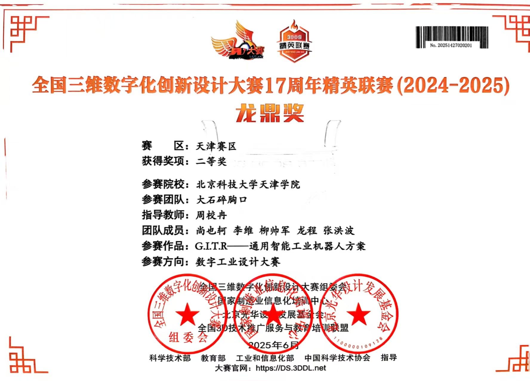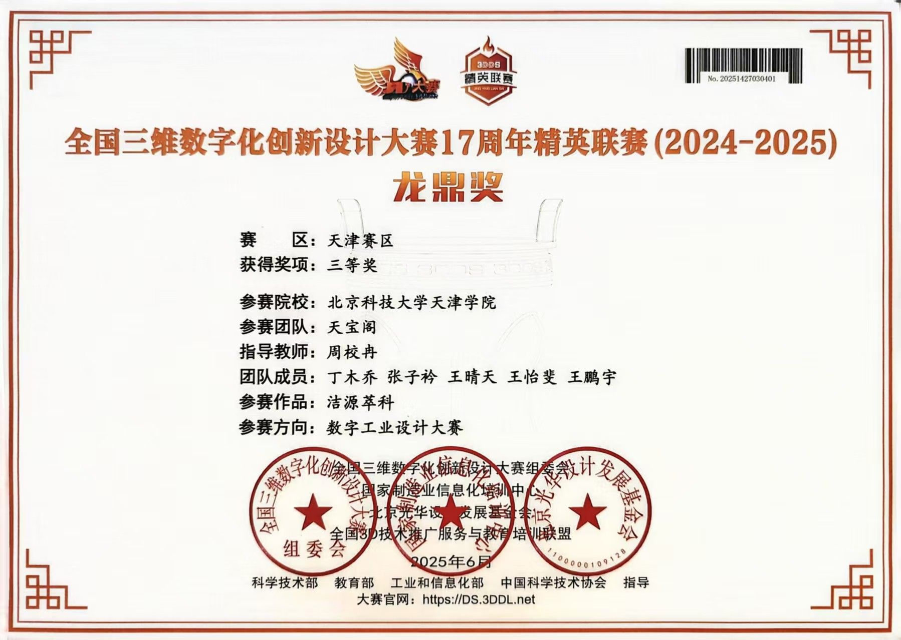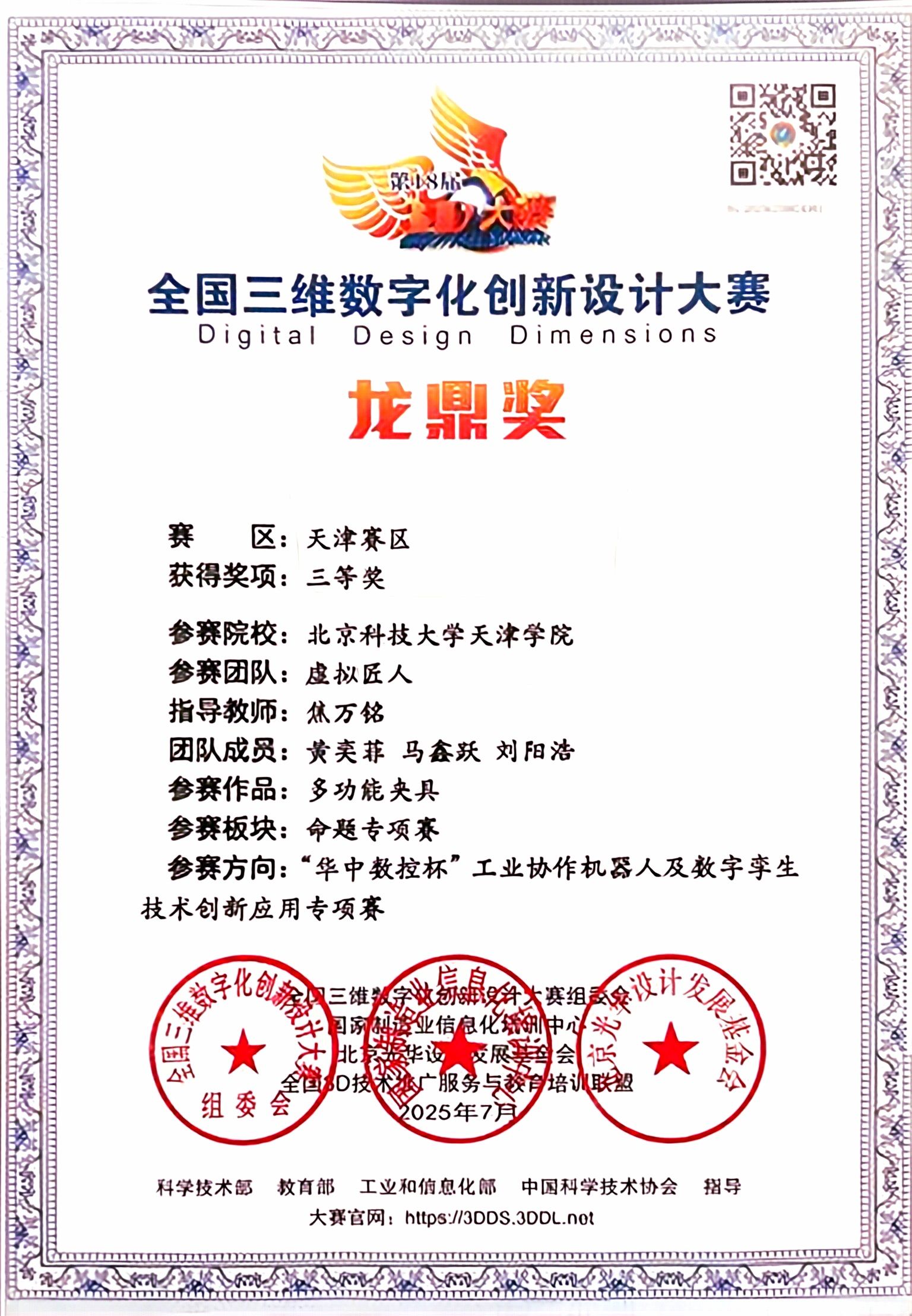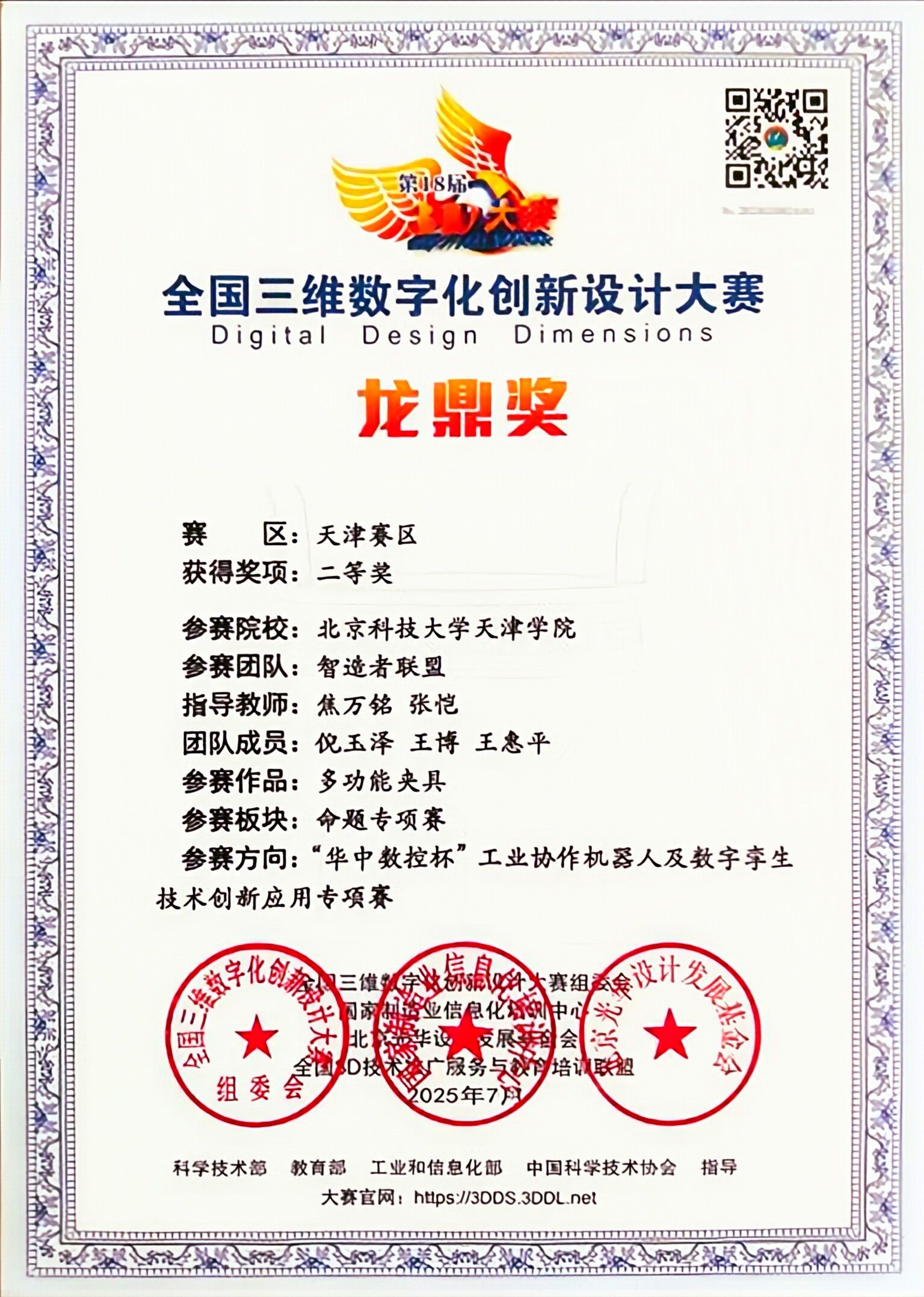 2025年12月6日,由教育部、科技部、工业和信息化部、中国科协指导,国家制造业信息化培训中心、全国三维数字化技术与教育培训联盟、北京光华设计发展基金会联合举办的第18届全国三维数字化创新设计大赛全国总决赛落下帷幕。大赛自启动以来,全国31个省/直辖市/自治区/特别行政区赛区、600余所高校,经过初赛/校赛、复赛/省赛层层选拔入围总决赛参与角逐龙鼎大奖。