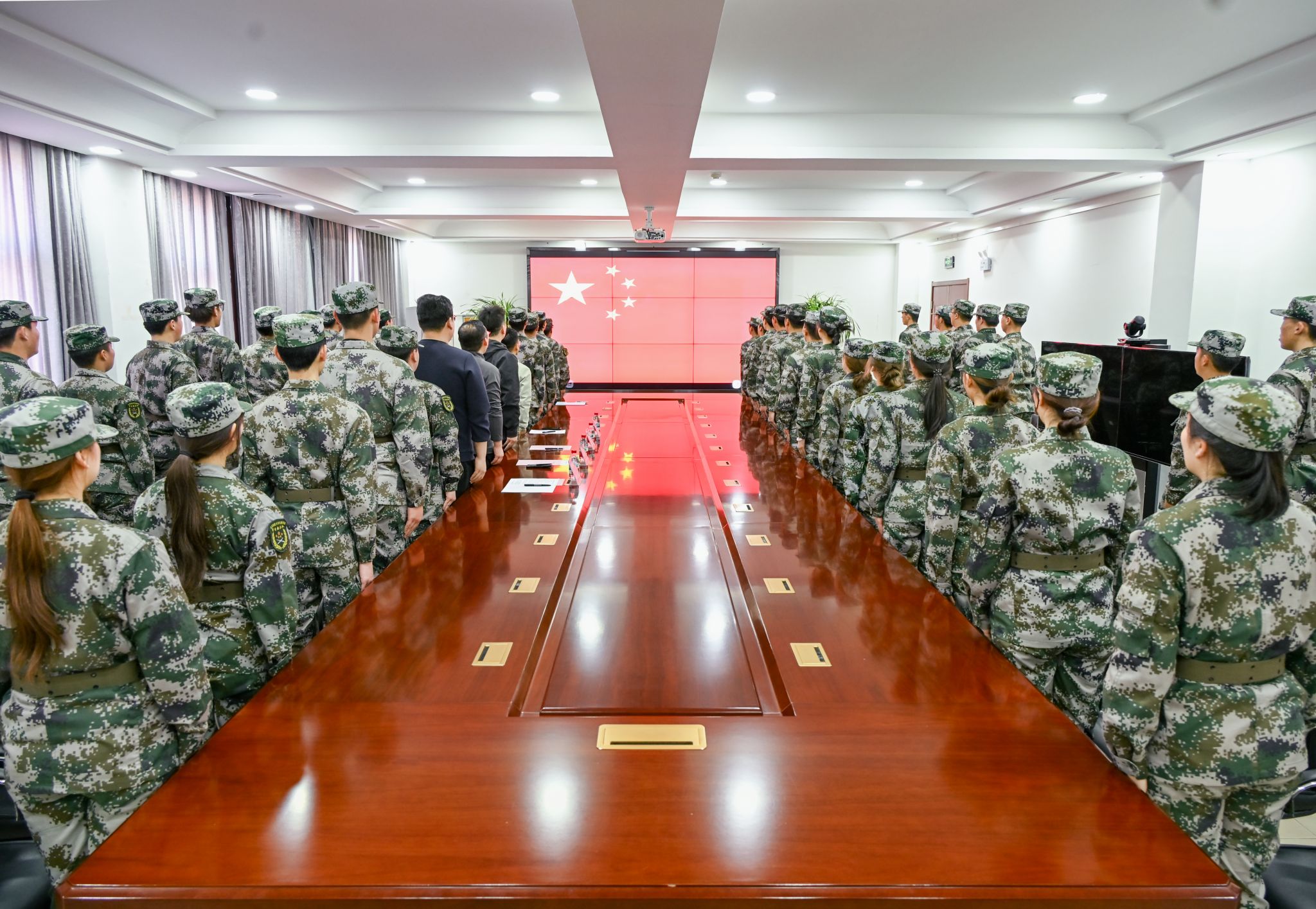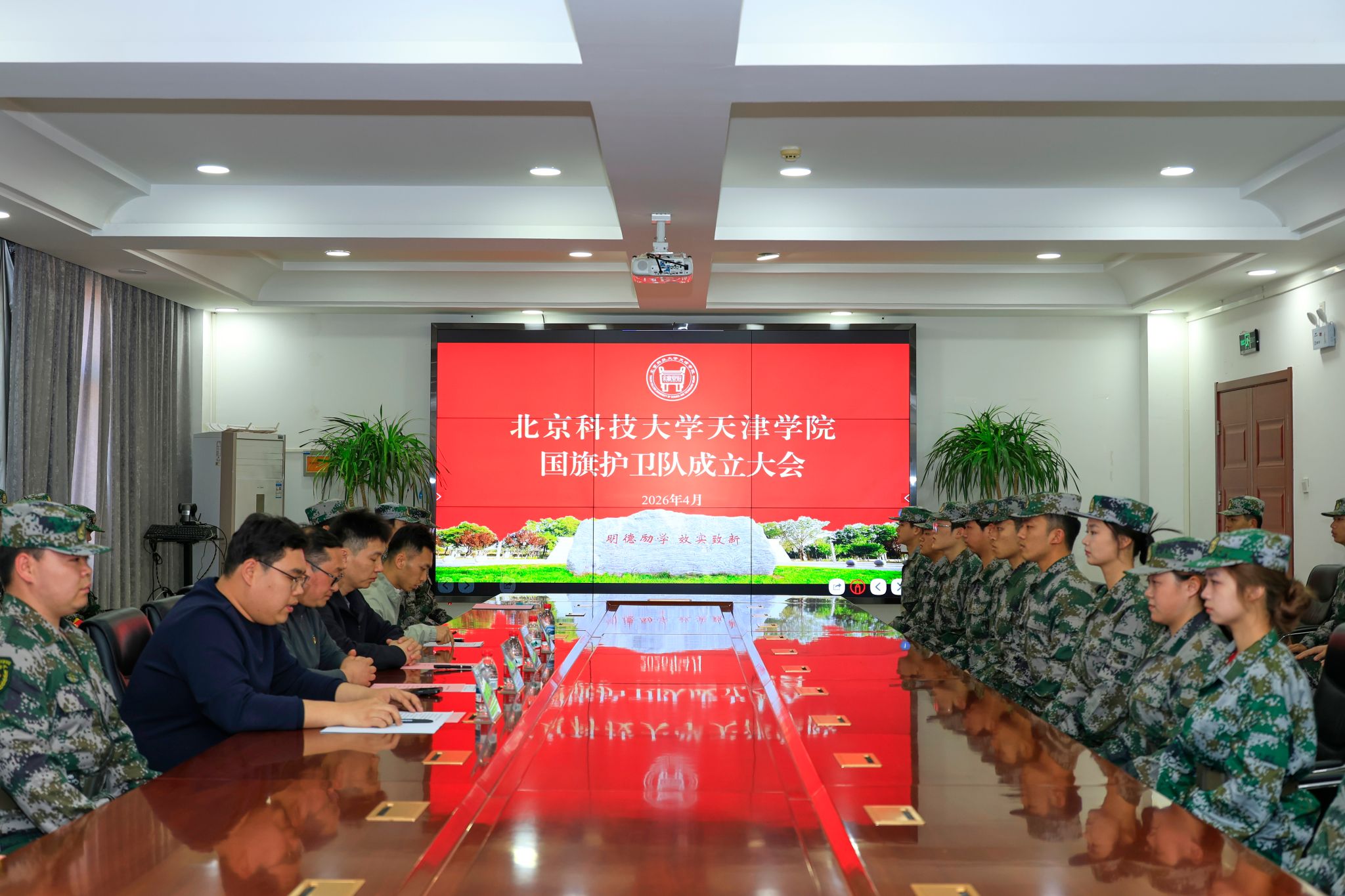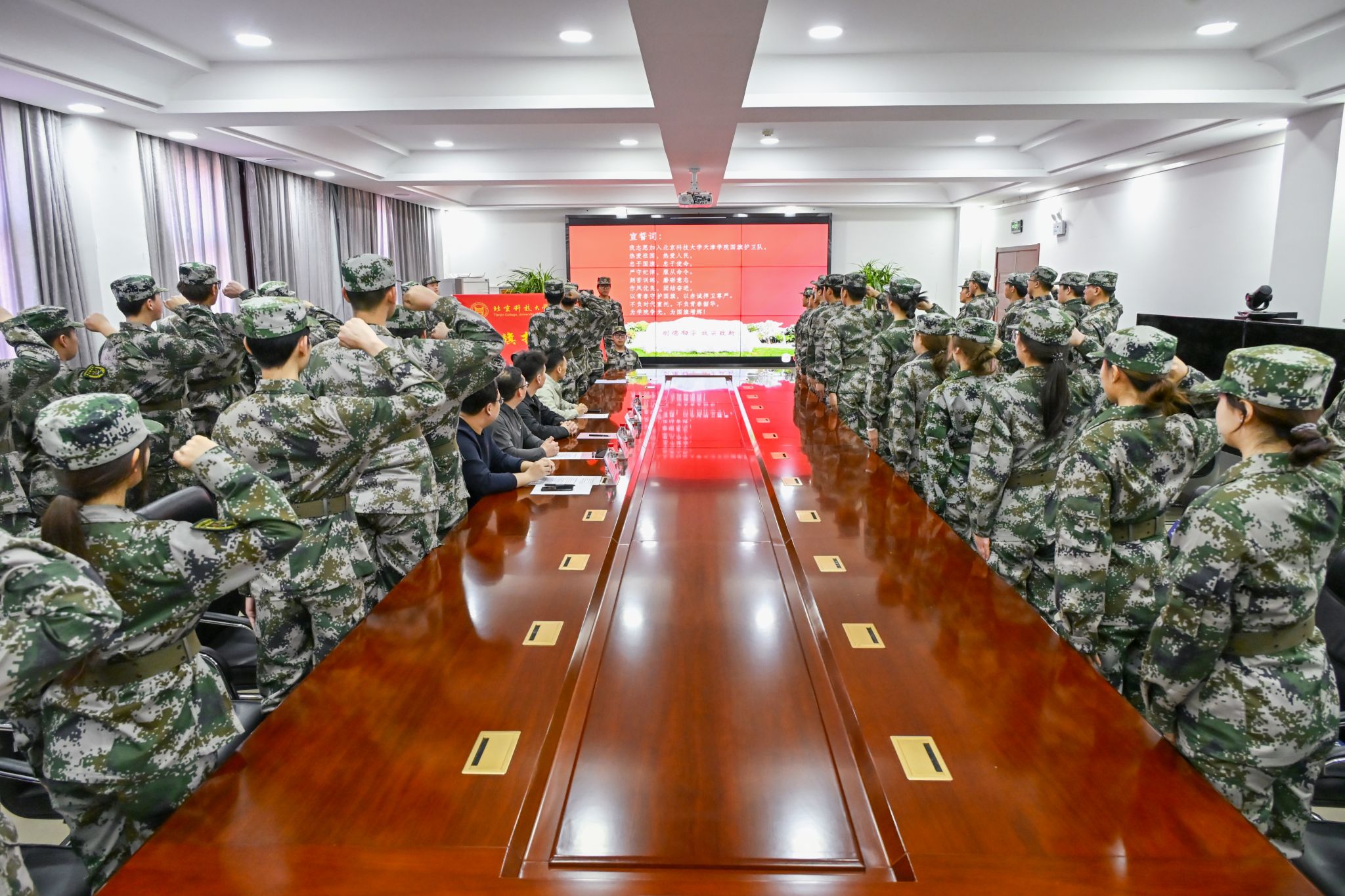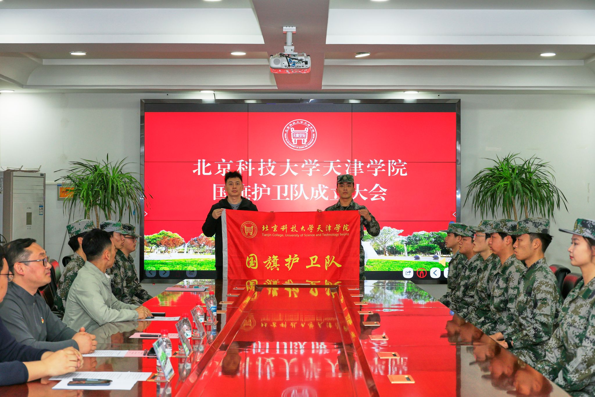 国旗护卫队成立大会在12教300会议室隆重举行。国产视频党委副书记董亮、武装部副部长周少华出席,征兵办公室副主任李雲啸、国防教育科副科长刘武辉及国旗护卫队全体队员共50余人参加。