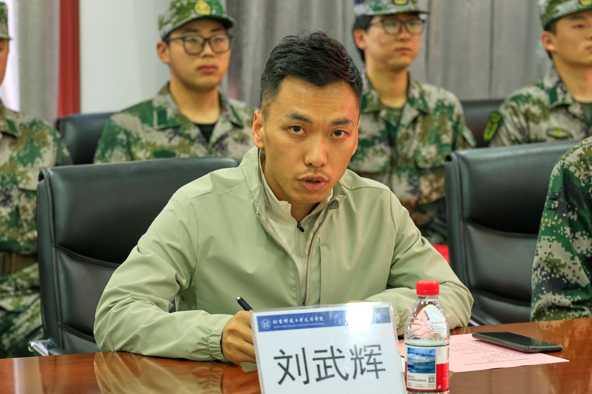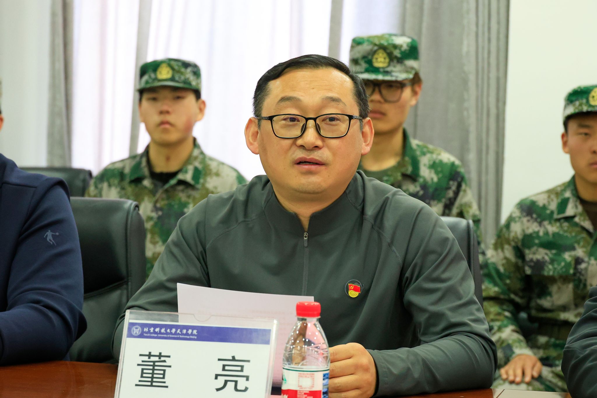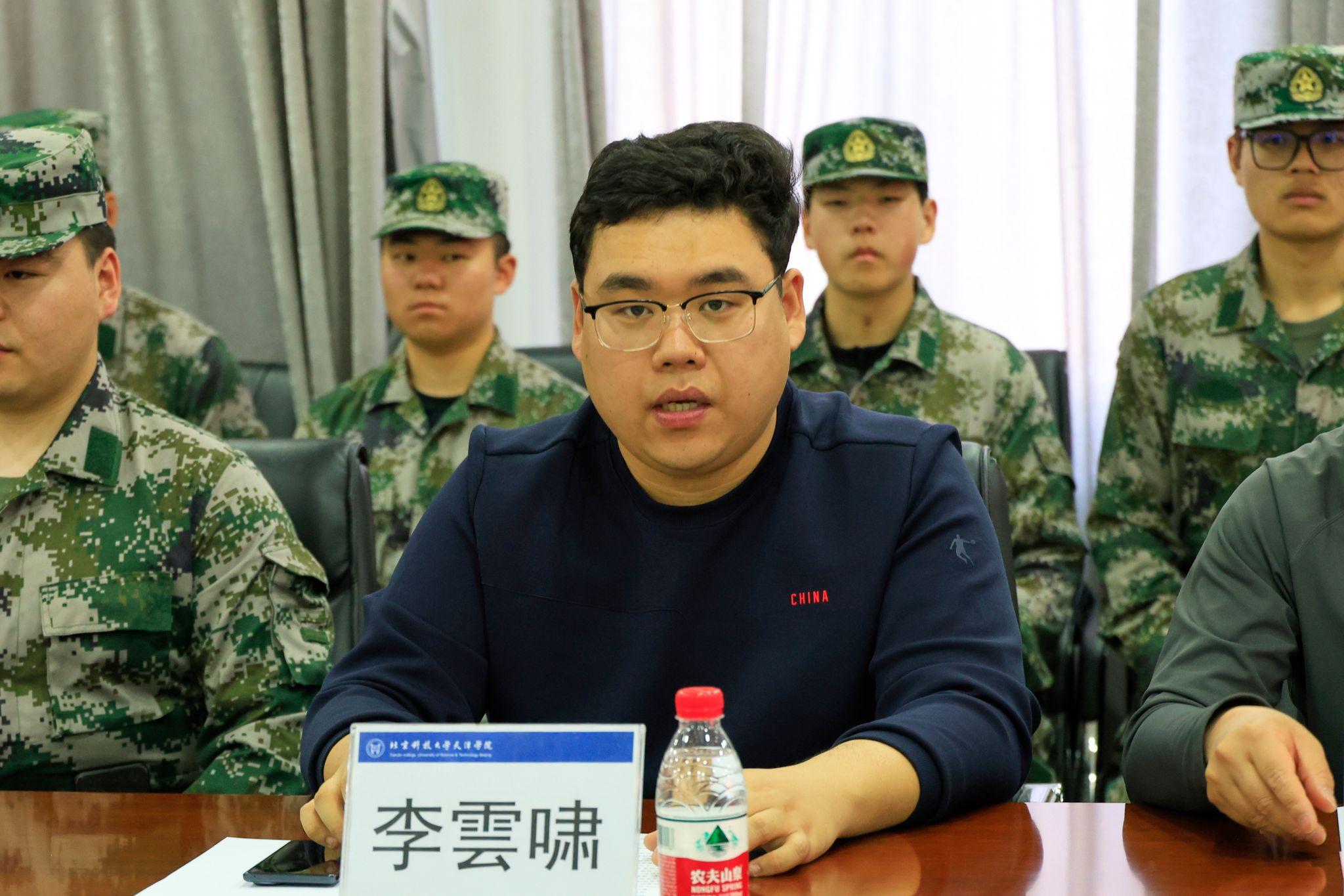 李雲啸主持大会,并介绍国旗护卫队成立的重要意义与承担的重要使命任务。刘武辉详细介绍国旗护卫队组建背景、队伍规模、组织架构、选拔标准、核心使命等基本情况,明确训练要求。